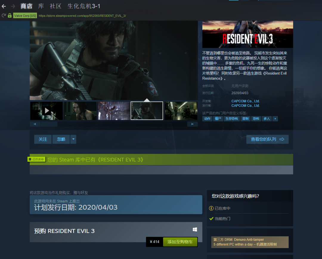 游戏区服:生化危机3:重置版 > STEAM > STEAM