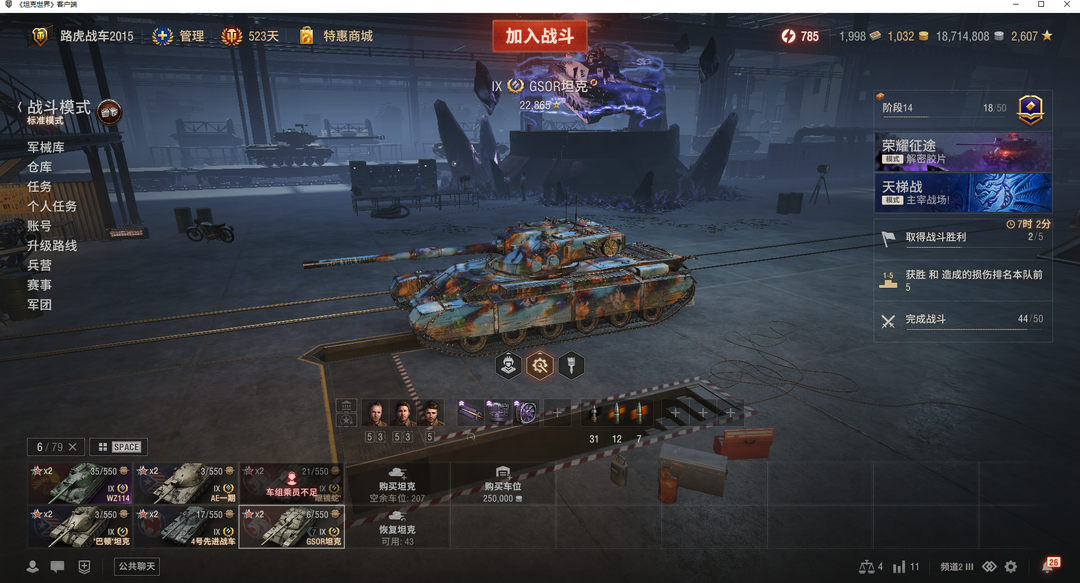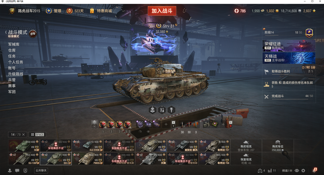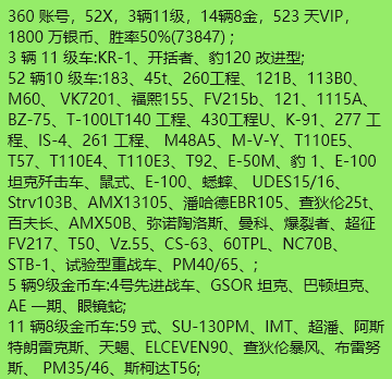 Plus,52x级,3辆11级,14辆8金,523天VIP,1800 银币、22个紫装11个红装