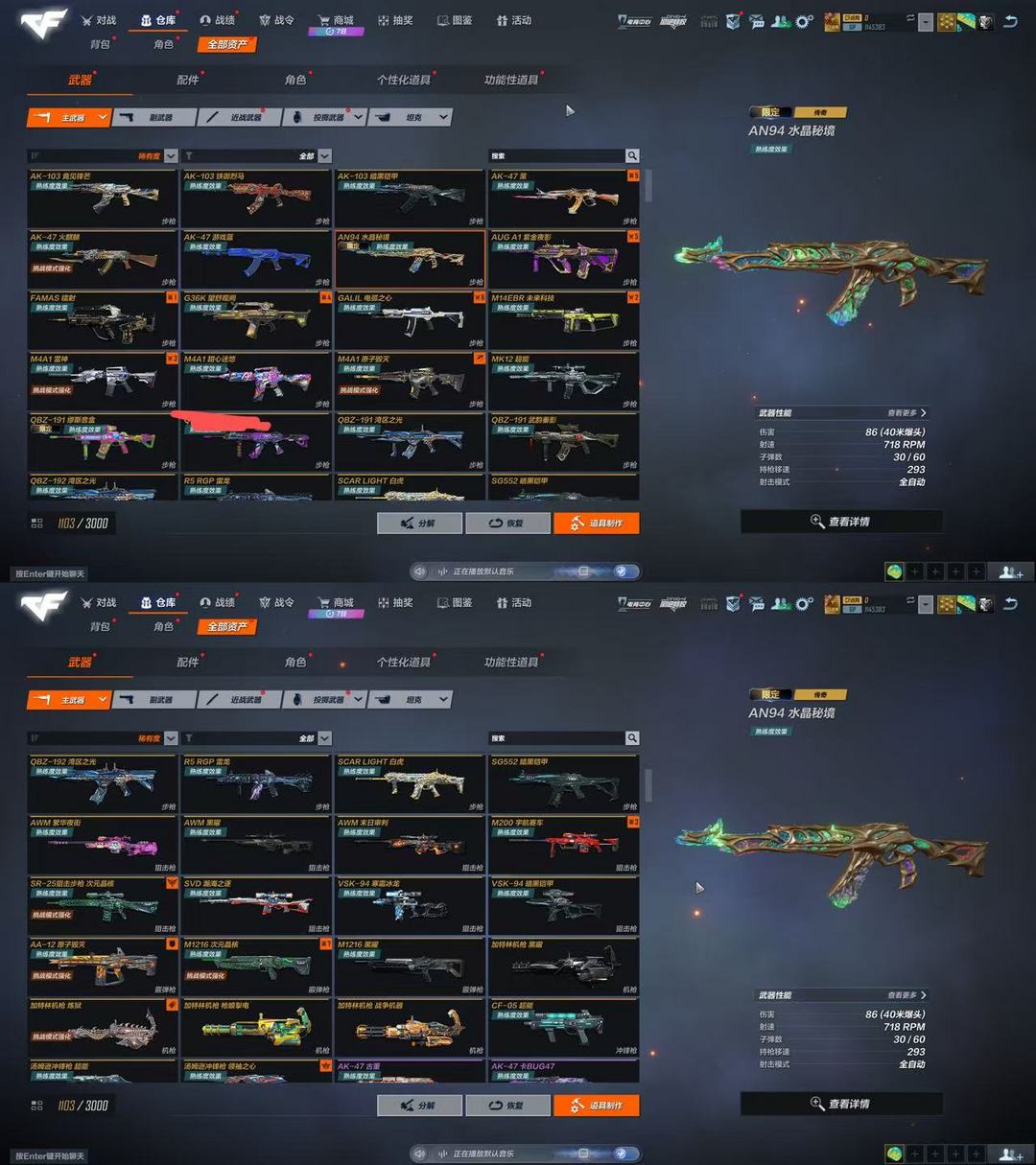 禁排位⚠️AN94水晶秘境✅FMAS镭射✅G36K望舒✅VSK暗黑铠甲极氪✅蝴蝶刀冰刃寒星✅霸王枪✅