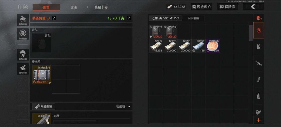 暗区突围千万柯恩币账号,欧皇号,刚刚出机密,柯恩币44万,仓库价值40多万,有十多把满改枪械,有钥匙,有六格保险箱,有很多枪皮,战斗分高,别做出一切减少信誉分的游戏行为,别开挂,别毁号后撤单!欢迎老板上号!