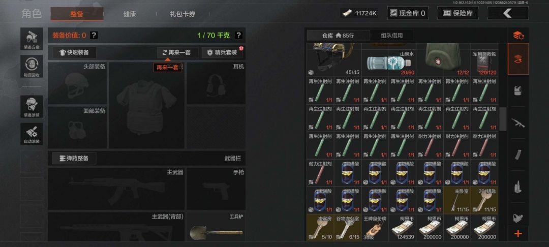 1000多万纯币随便用,仓库里还一堆装备,还有农场的钥匙 主客房 一把AX和六甲
