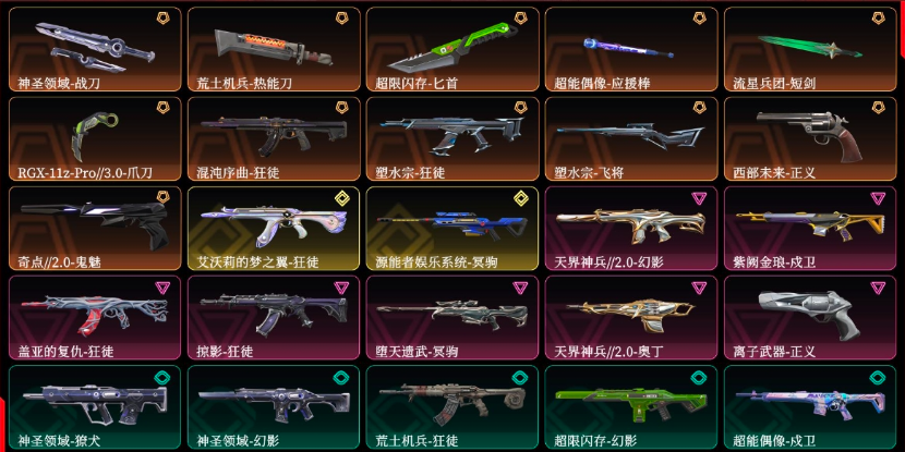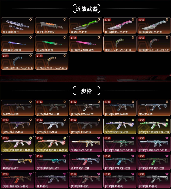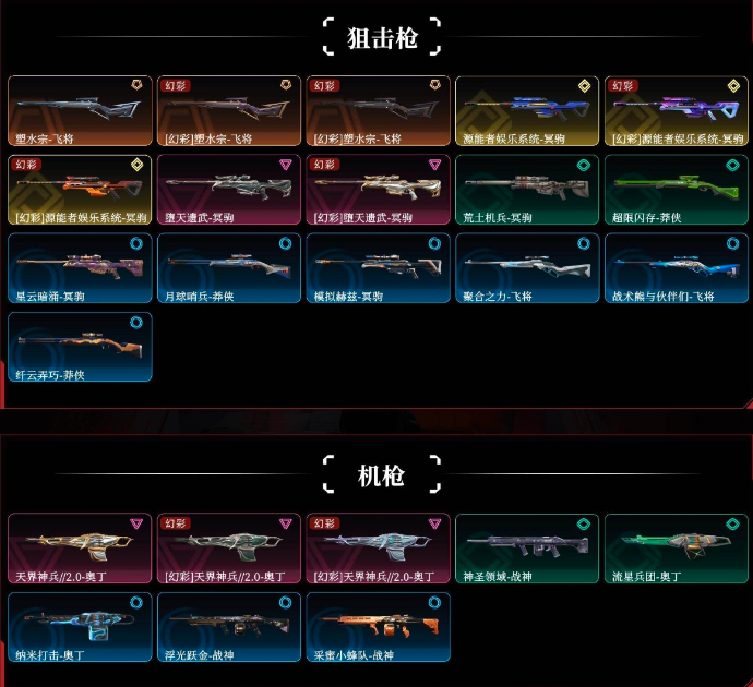 可排/塑水猫猫混沌盖亚掠影狂徒/弃王电玩大狙/天界20幻影/显卡爪刀/西部正义/奇点鬼魅/天界奥丁
