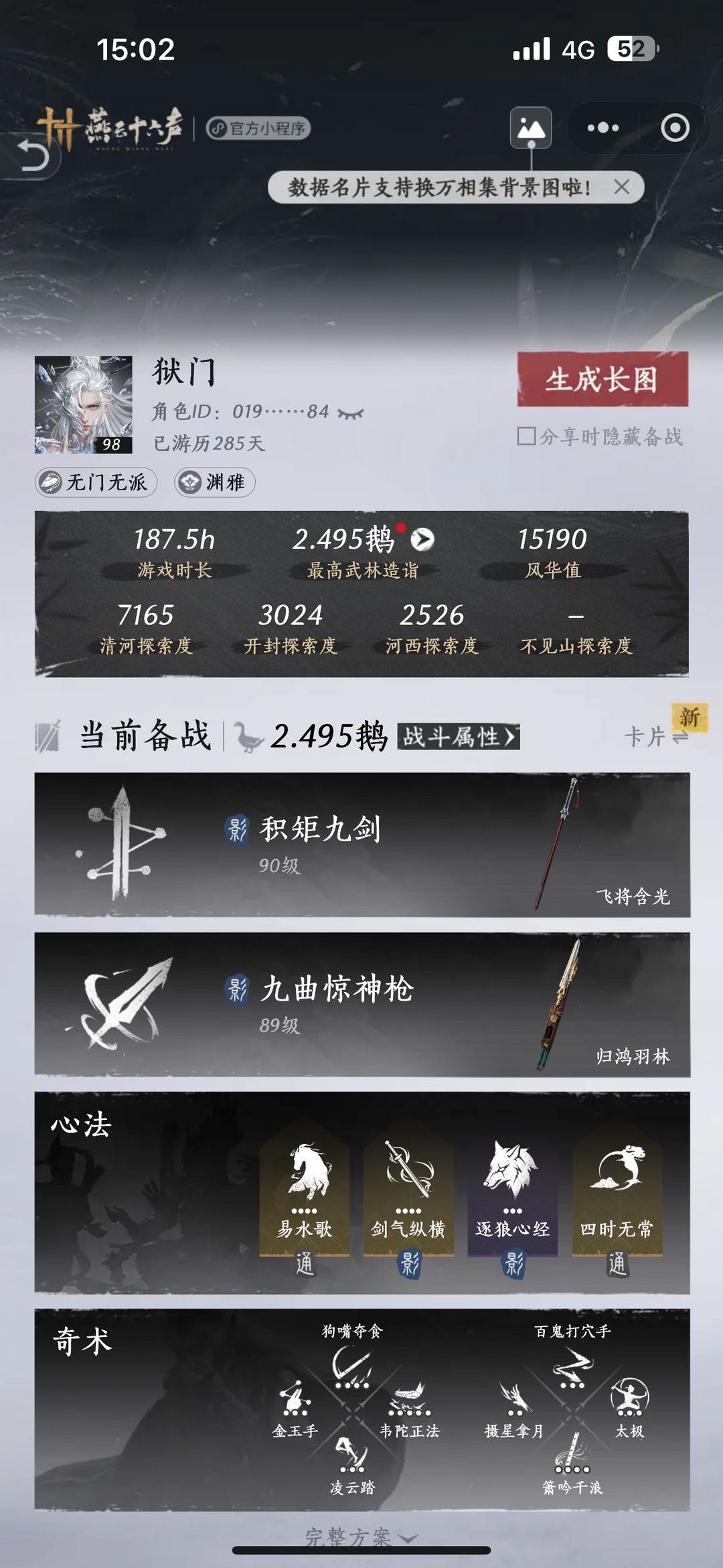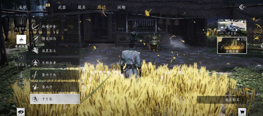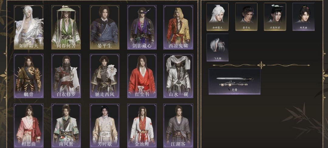 如碎霜天套装➕剑影藏心➕西凉鬼啸➕白衣修罗➕千斤坠稻穗特效➕飞毛腿,战力很低请见谅
