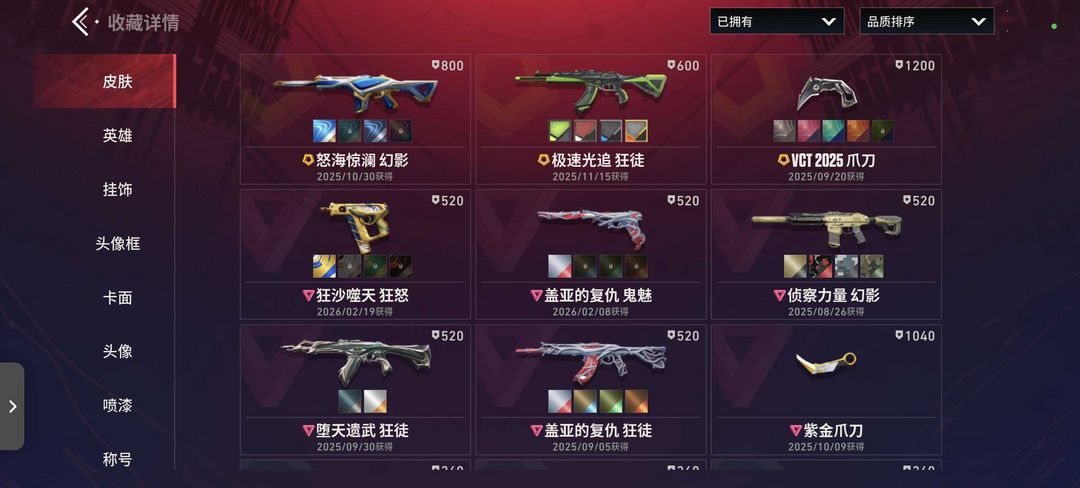 炫VCT爪刀、紫金爪刀满级✅炫侦查、怒海幻影满级✅炫盖亚、显卡、堕天狂徒满级