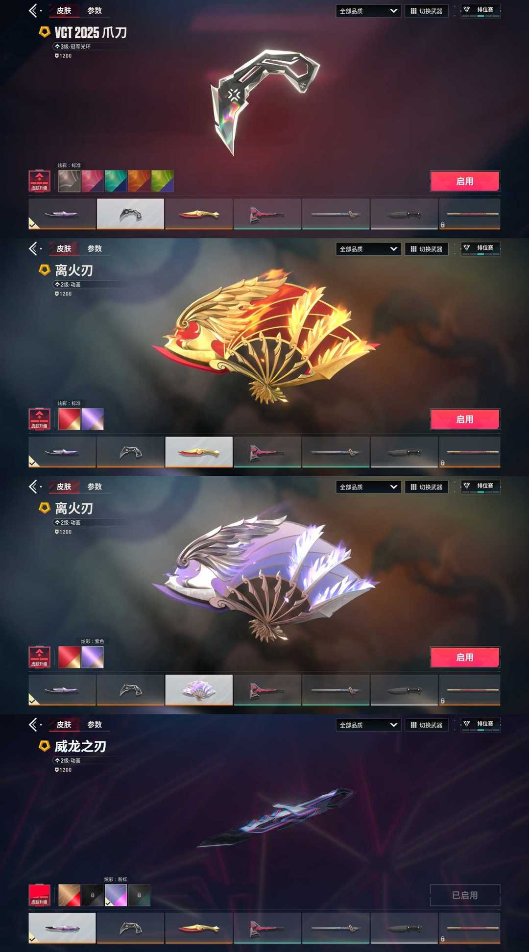 特惠日租❤️绝版VCT爪刀~离火刃❤️耀鳞威龙套❤️盖亚狂徒❤️醒狮幻影❤️离子冥驹❤️奇点正义