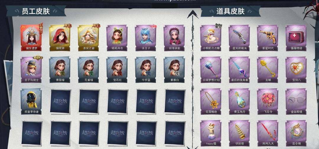 1红皮 2金皮 1魔盒 4紫皮 巫铃儿-镜生遗梦,巫铃儿-镜花辞,薇薇安-圣光之谕