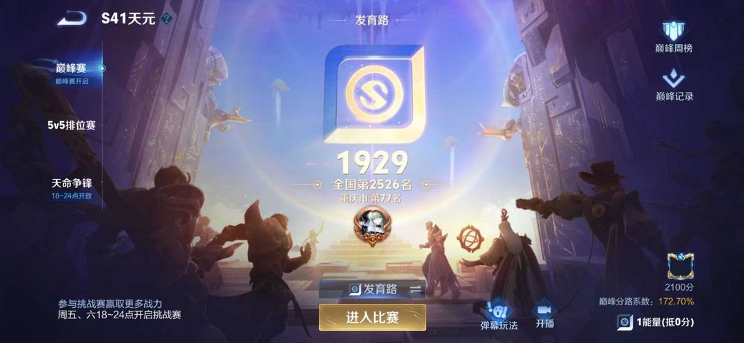 巅峰万强闪电框全国2526名♥省标在榜孙权♥省标艾琳♥75段省级发育♥可排位♥禁止发育路巅峰赛