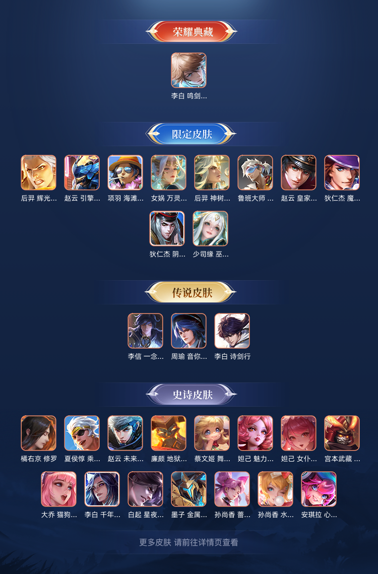 禁言◆在榜金标李白无双碎月剑心李白典藏⭐历史大国赵云⭐琥珀纪元伽罗⭐炽阳神光诗剑行一念神魔修罗