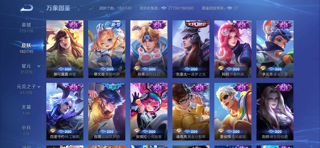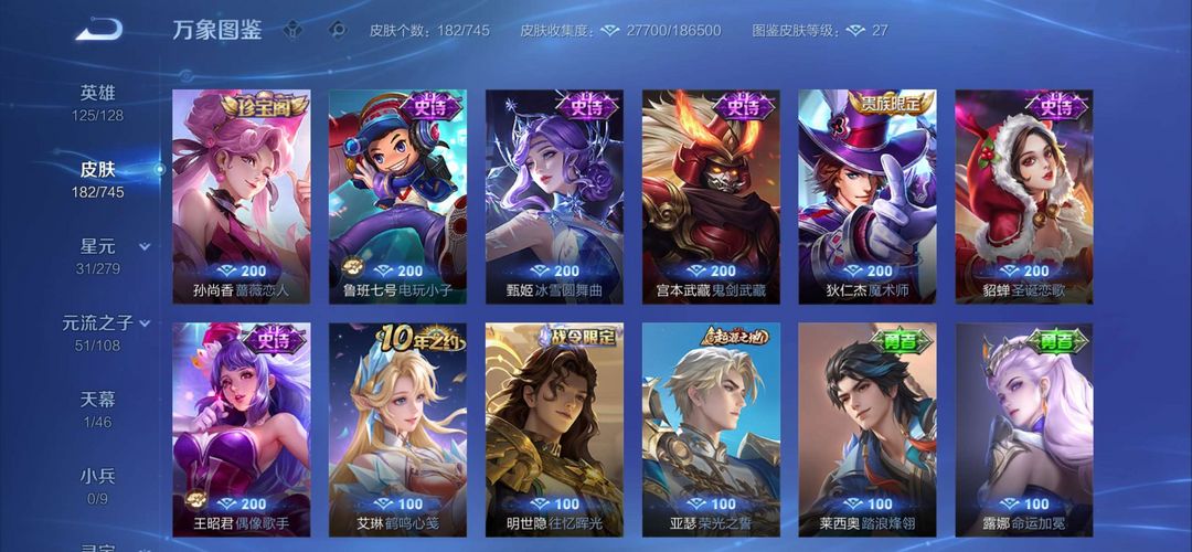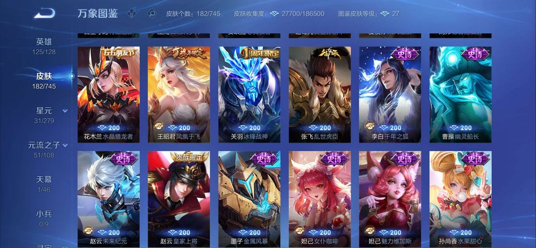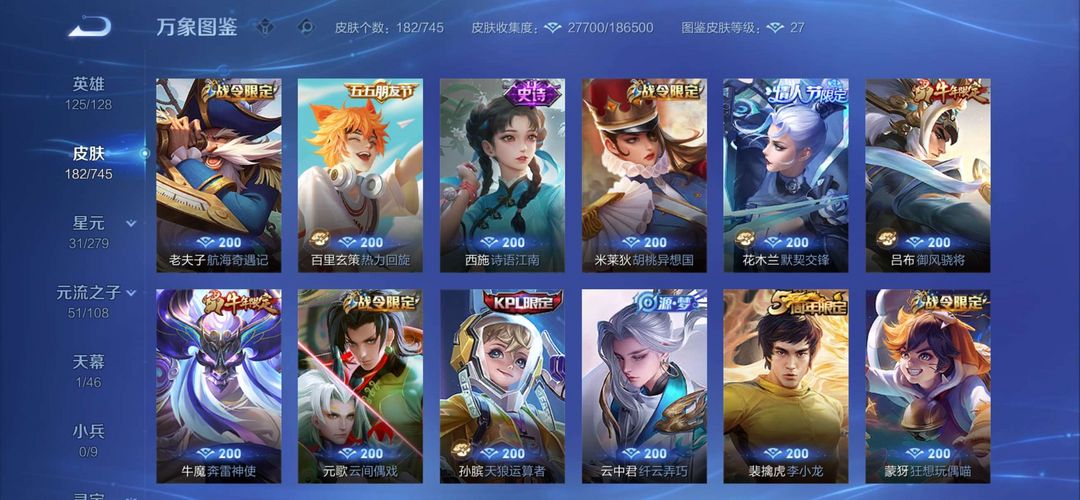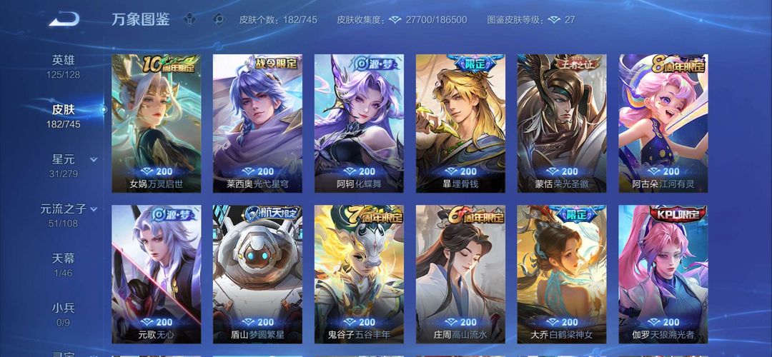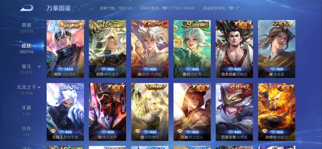 荣耀典藏韩信 澜年限 暃 埋骨钱 惊梅引 地狱火刘备时之恋人星元皮 镜 炽阳神光 玄策白虎志