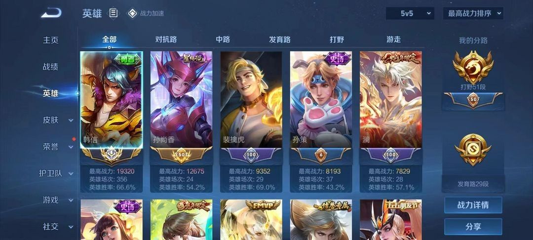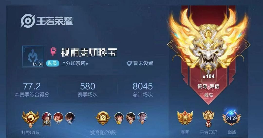 主播号正式服历史大国标韩信1.9万战力韩信|在榜县标韩信孙尚香裴擒虎|魔方亮|历史巅峰最高2459|