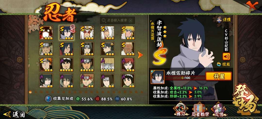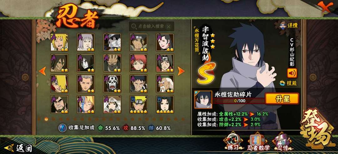 六尾鸣人,秽土再不斩,自来也,漂泊土新水,老三代,须佐止水,近期高招大部分都有