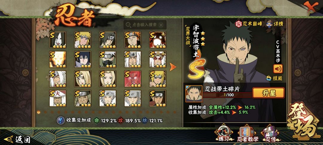 秽土再不斩✨六尾鸣人✨漂泊带土✨须佐卡卡西✨✨须佐止水✨忍战带土✨九尾鸣人✨白面具 忍战李洛克 破面带土 九尾查克拉鸣人 忍战雷影 永恒万花筒佐助 宇智波斑白面具 忍战宁次 秽土三代 长门 水门 斑 初代 二代 面具男 须佐鼬 佩恩 雷影 大蛇丸 纲手 小南 止水 忍战丁次 迪达拉 百豪樱 晓大蛇丸 神威卡卡西 奇拉比 仙鸣 鹰佐等 几乎大部分老忍者 大部分限定招募忍者