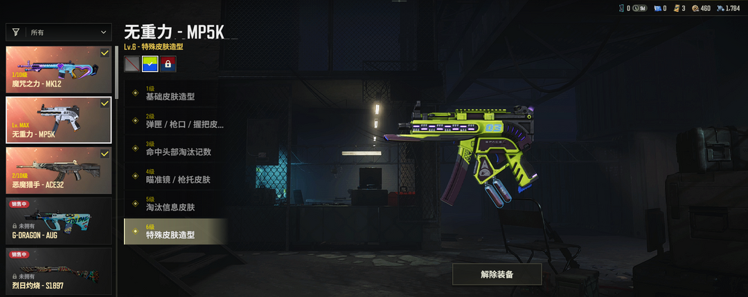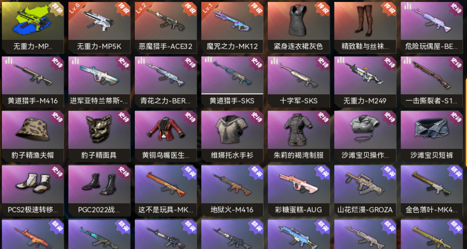 满级异色无重力MP5K-恶魔ACE32-魔咒MK12-亚特兰蒂斯AUG-青花瓷M762-小兔套装-朱