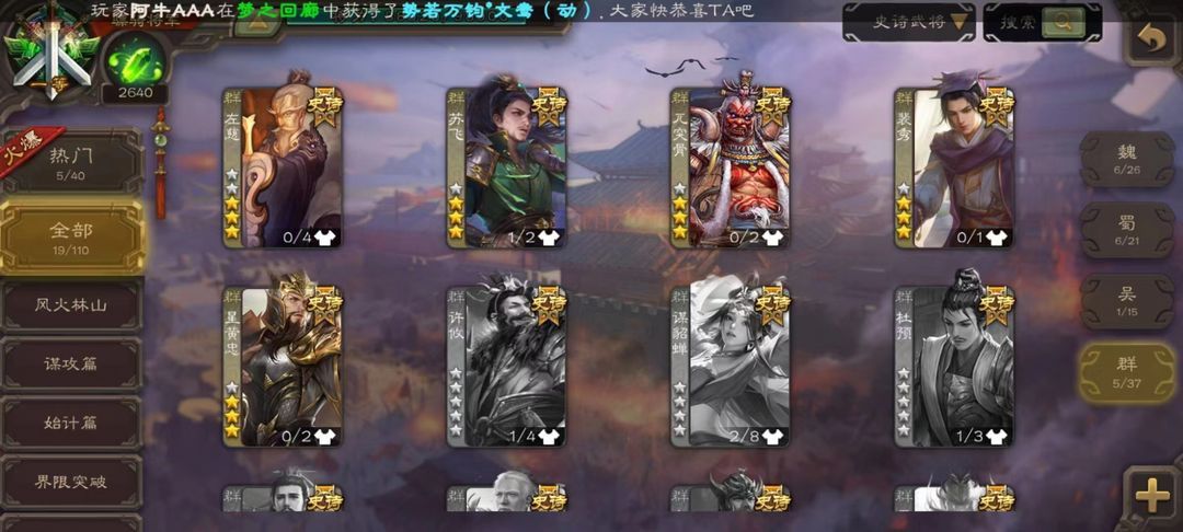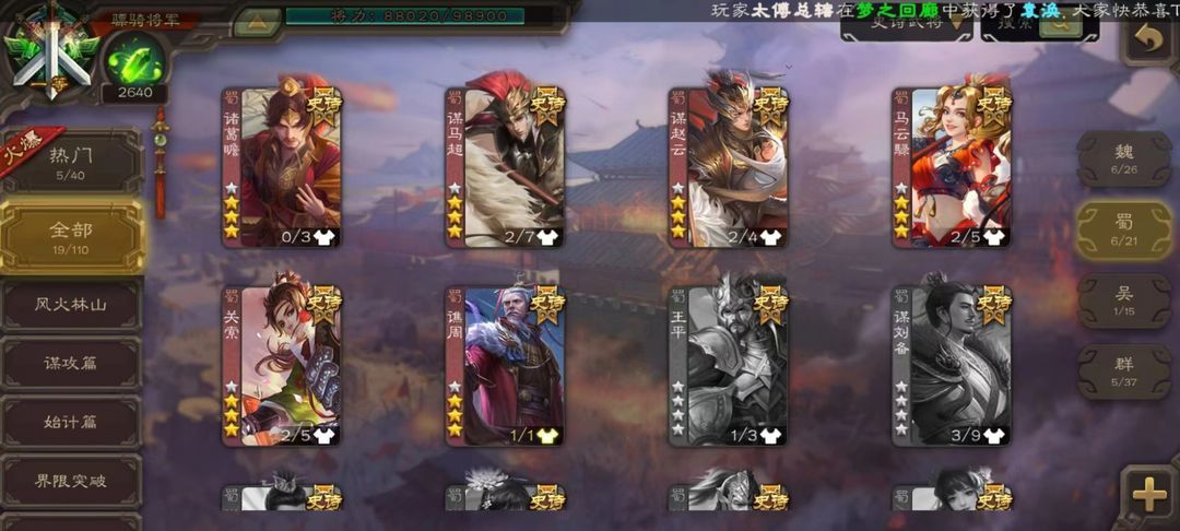 【大将军】双形态界钟会◆登高勘形裴秀◆动界徐盛22史诗谋赵云曹纯诸葛瞻神太史慈苏飞星黄忠界曹真关索