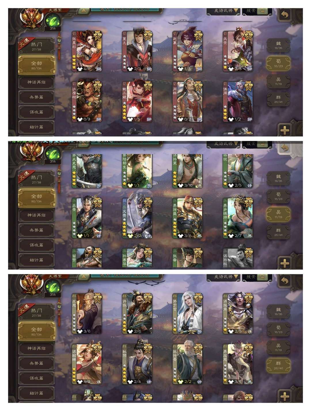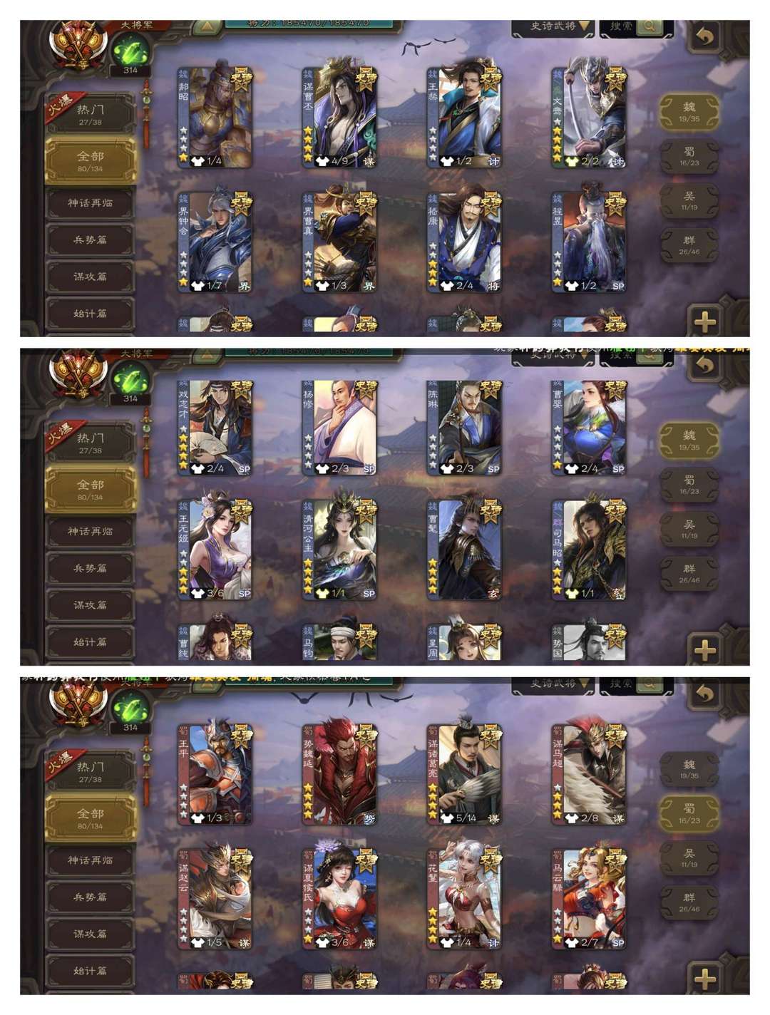 有卡!伪全扩大将军动态刘焉/势魏延曹髦/鲍三娘神荀彧/友诸葛亮谋曹丕/十常侍孙寒华/张仲景/势陆郁生