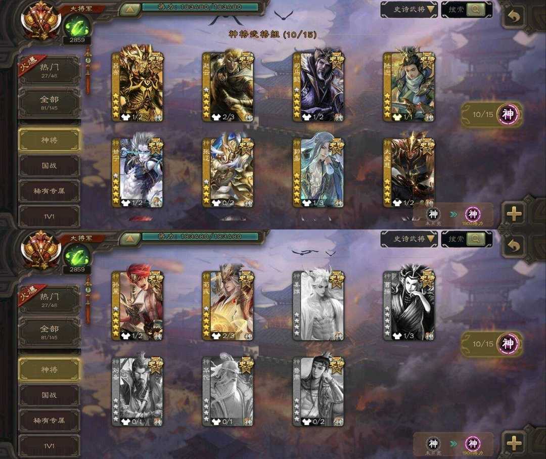 史诗武将(神将):神郭嘉,神荀彧,神甘宁,神孙策,神太史慈,神赵云,神陆逊,神司马懿,神吕布,神张辽